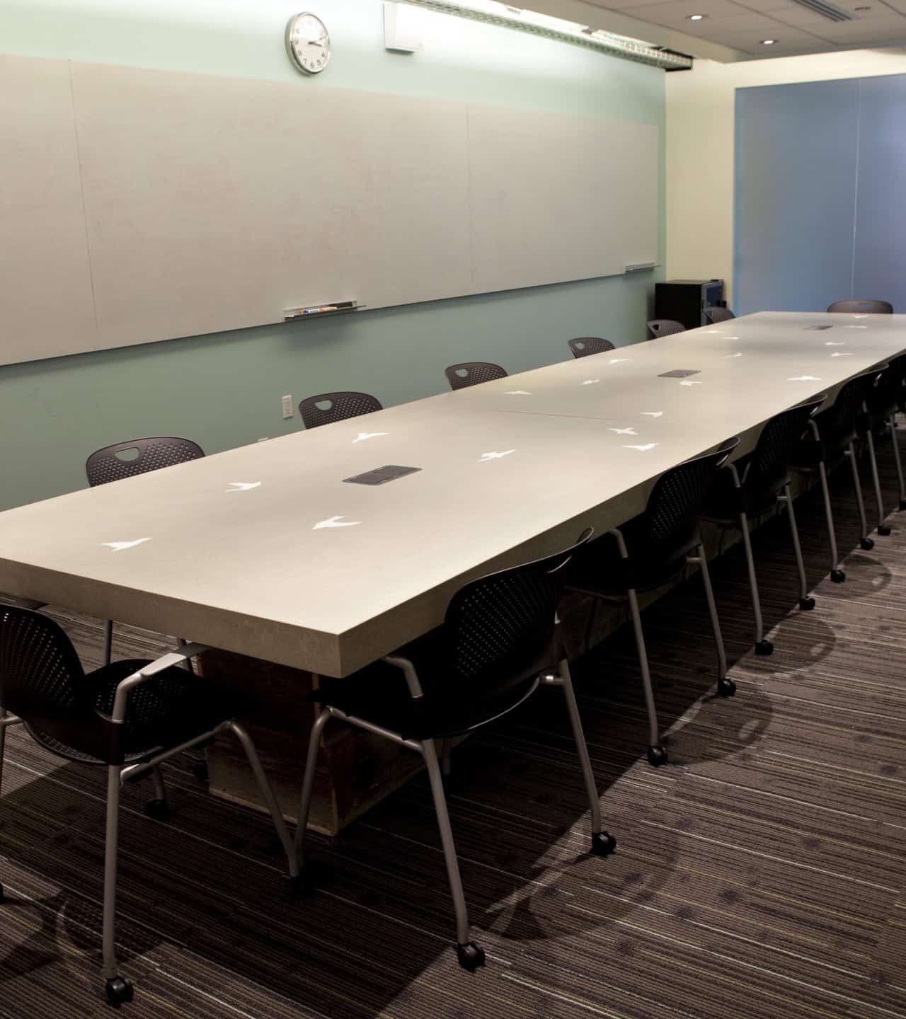 Enter the old Twitter Headquarters and you were welcomed with an urban rustic decor designed by Sara Morishigi Williams. The design of the many concrete conference and coffee tables throughout the space were inspired by a photograph of hundreds of crows both huddled together on the ground and taking off over a landscape.
